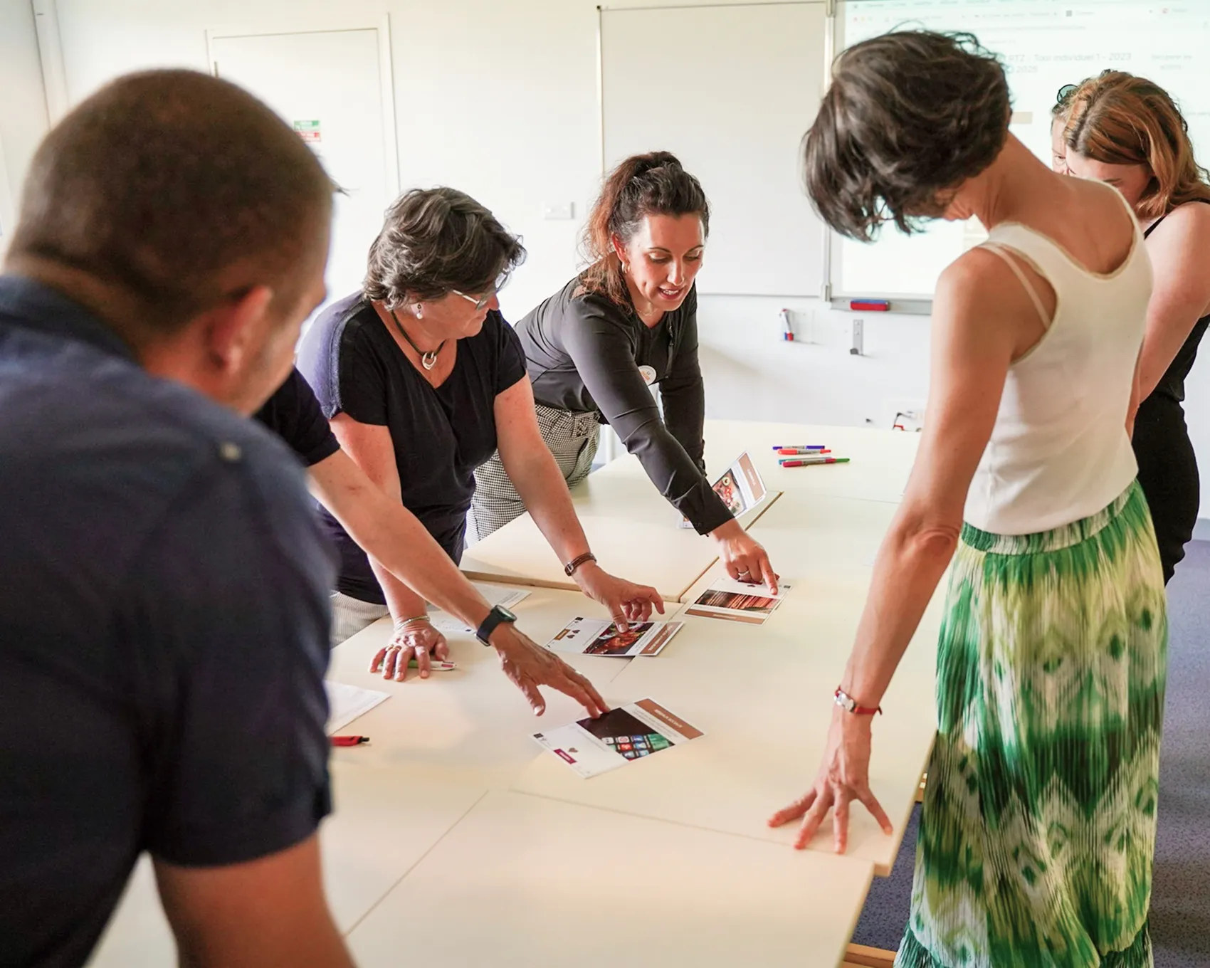 Parce que comprendre ne suffit pas. Ce qui change vraiment les comportements, c'est l'expérience collective : apprendre ensemble, confronter ses représentations, s'engager dans un groupe, dans un cadre qui favorise l’intelligence collective. C’est pour cela que nos parcours alternent temps forts en présentiel et suivi dans la durée, afin de débloquer les freins humains que les formats classiques ne touchent pas.